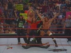 a one nite only event! HHH, chyna, road dogg and billy ride together one last time. hhh was in a match against the radicals. dogg had an idea. here is his idea. |