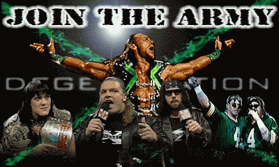 are you ready...... D X, one of the greatest factions in the history of WWF. HHH, X-pac, road dogg and billy gunn, shawn michaels and Chyna! |