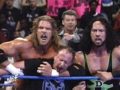 x-pac and HHH beat up on earl hebner at the direction of mr mcmahon. |